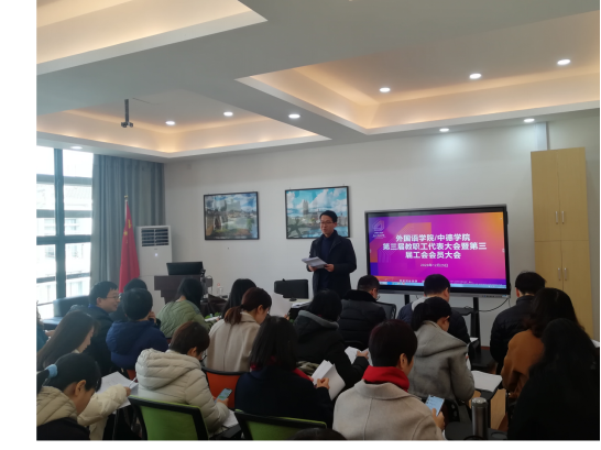 正式会议上,外国学院/中德学院院长朱吉梅做了学院2020年工作报告,分工会主席陈亚轩做了学院第二届分工会委员会工作报告,分工会委员做了院分工会2020年财务工作报告,并得到了会议的审议通过。