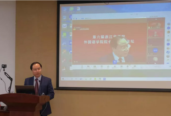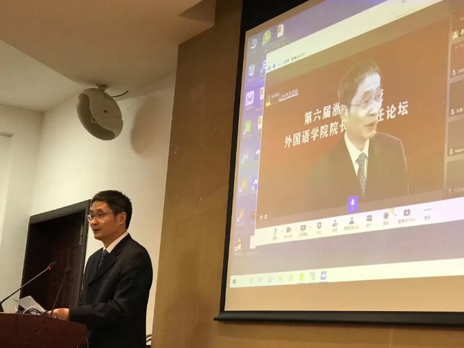11月21日,“第六届浙江省高校草榴社区 院长/系主任论坛”在杭州市小和山高教园区浙江科技学院闻理园隆重举行。浙江大学中华译学馆馆长许钧教授,华南农业大学草榴社区 院长黄国文教授,上海外国语大学副校长查明建教授,上海师范大学外国文学研究中心主任朱振武教授,浙江草榴社区 校长洪岗教授与副校长柴改英教授,以及来自省内外三十多所高等院校的外语学院院长、系主任与专业负责人齐聚西溪湿地源流之一的西蜜湖畔,小和山麓,共商新文科、新工科、大外语背景下高校外语学科发展战略。论坛由浙江省外文学会发起,浙江科技学院草榴社区 /中德学院承办,上海外语教育出版社、杭州新琦迹英语协办。本届论坛采取了线上和线下结合的形式。