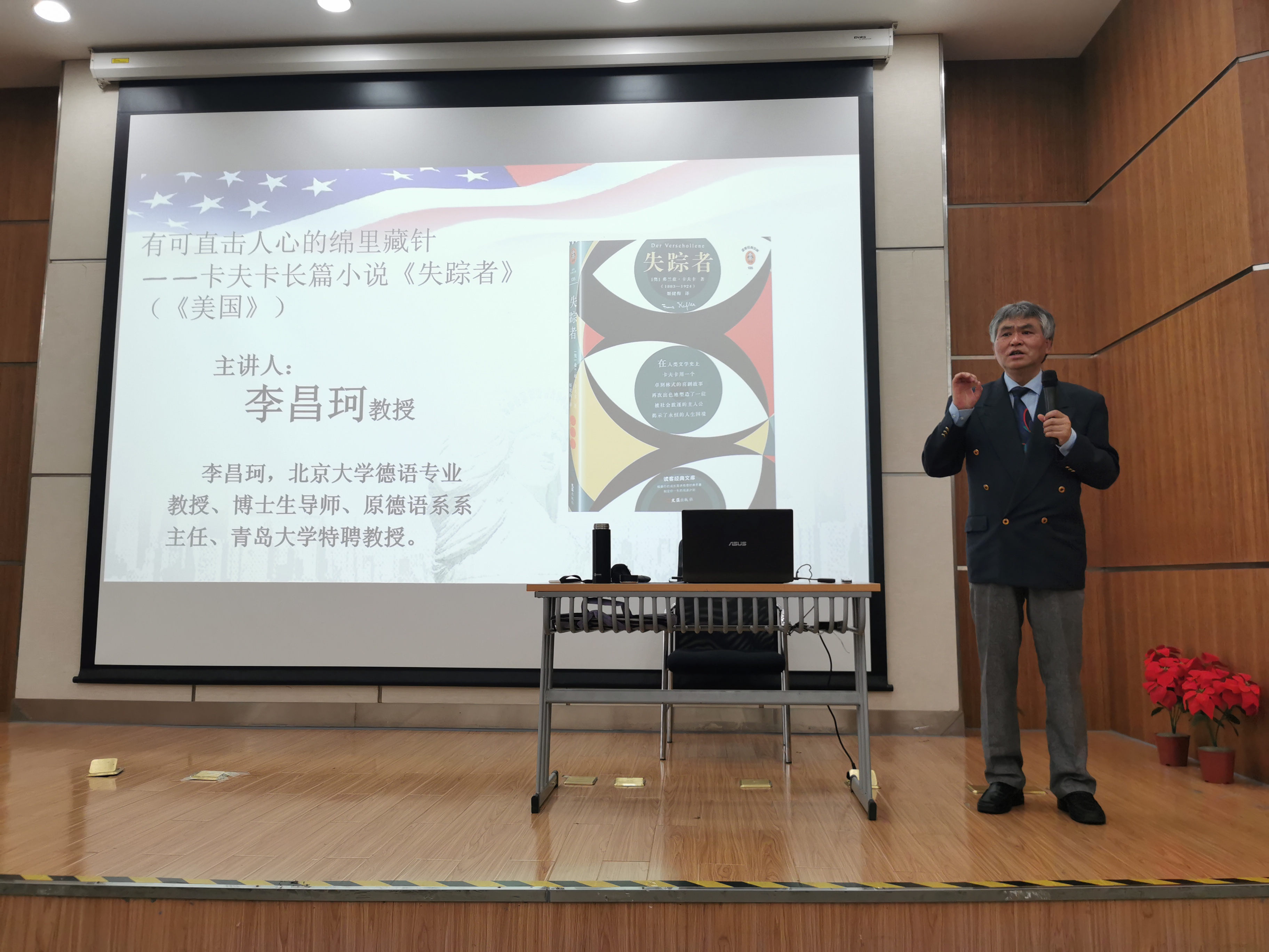 2021年4月23日草榴社区 /中德学院 、中德应用型大学研究院/德语国家研究中心邀请北京大学德语专业教授、博士生导师、青岛大学特聘教授李昌珂教授作客明德讲坛及西蜜沙龙,在安吉校区中德楼B4报告厅作题为“有可直击人心的绵里藏针——卡夫卡长篇小说《失踪者》(《美国》)”的学术报告,ZUST文学与文化研究所长胡一帆副教授主持此次学术报告,草榴社区 /中德学院教师、英语和德语专业大一、大二学生现场聆听了学术报告。