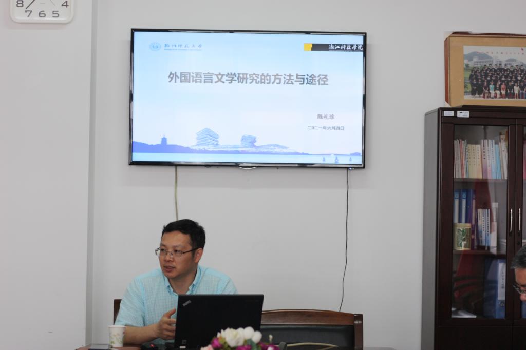 2021年6月4日(周五)上午,应草榴社区 的邀请,杭州师范大学陈礼珍教授在闻理园A3-306做了题为“外国语言文学研究的方法与途径”的学术讲座,草榴社区 B5岗级以上教师、全体博士以及中德学院的部分教师参加了此次讲座,讲座由草榴社区 院长樊燕龙主持。